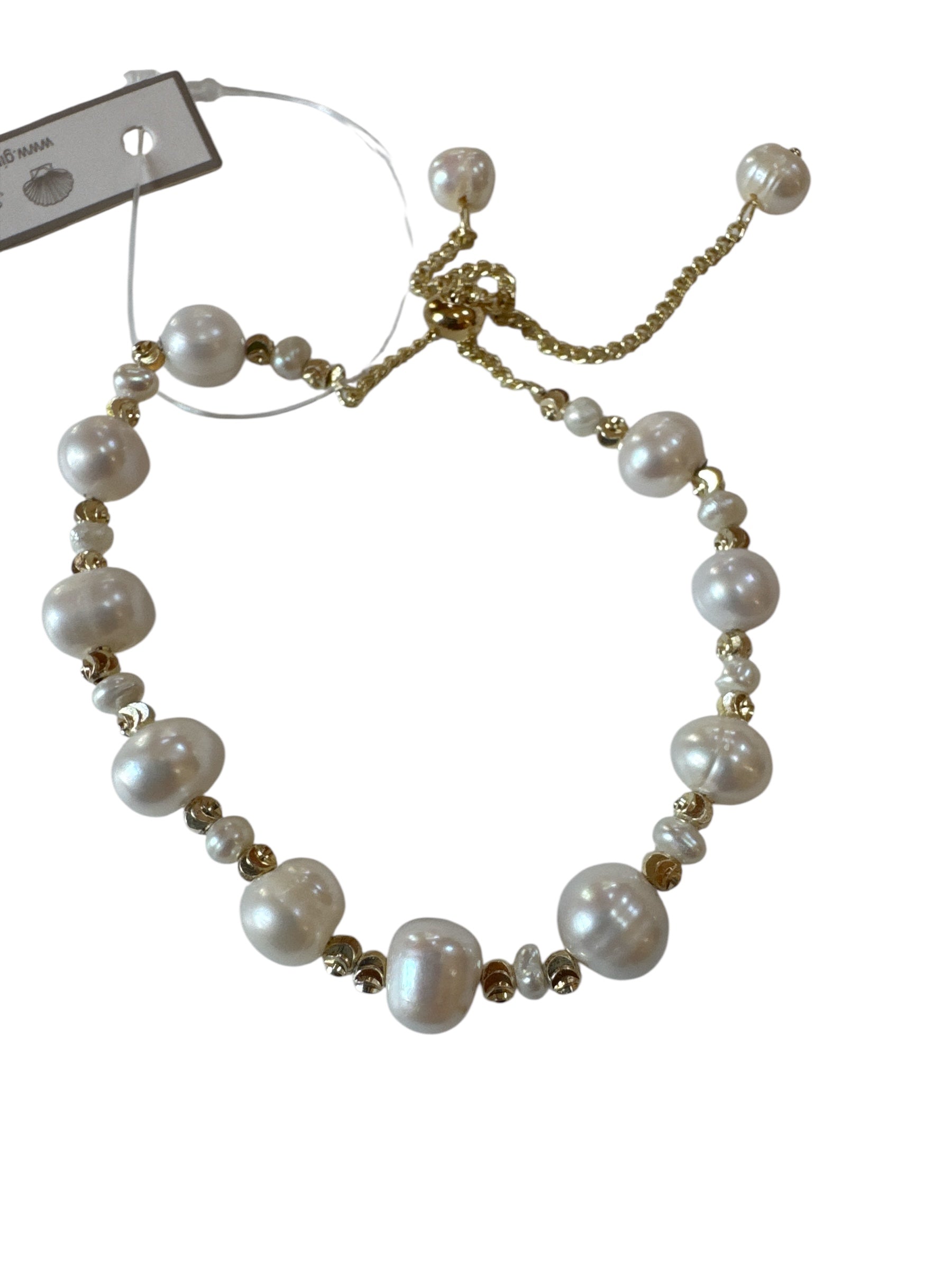 Petite Freshwater Pearl Bracelet. Slide clasp adjustment