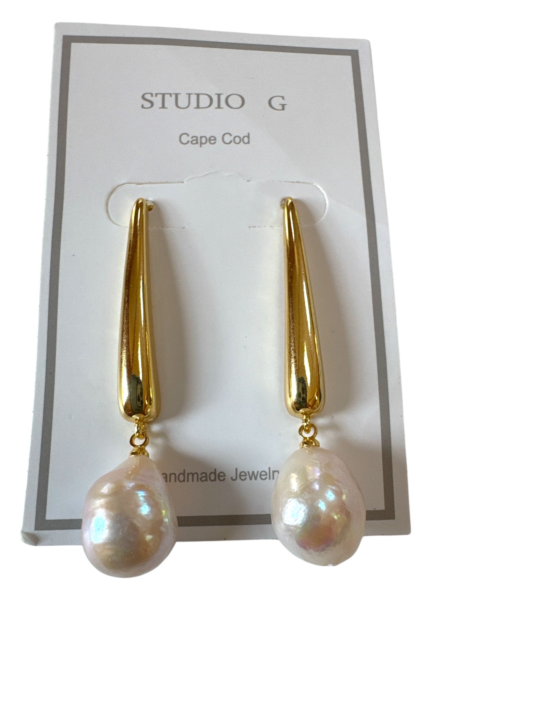 Beautiful Freshwater Pearl on Elongated Gold Plated Finding. Stud Post