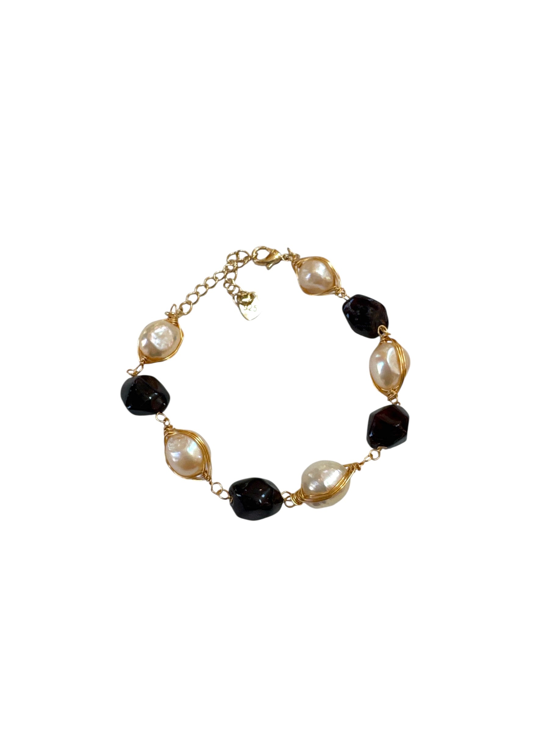 This adjustable bracelet combines the natural elegance of freshwater pearls with the deep, rich hues of garnet gemstones. Expertly wired for durability and style, it offers a refined accessory that complements both casual and formal attire. The adjustable design ensures a comfortable fit, making it a versatile addition to any jewelry collection.